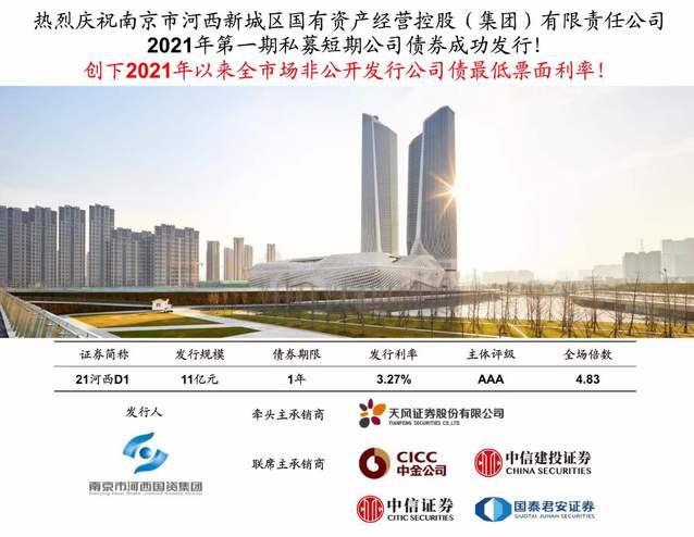 本次債券的成功發(fā)行充分體現(xiàn)了河西集團(tuán)管理層對(duì)市場(chǎng)時(shí)機(jī)的準(zhǔn)確把握和對(duì)資本市場(chǎng)運(yùn)作的成熟掌控能力,同時(shí)也顯示了投資人對(duì)河西集團(tuán)高度認(rèn)可和未來業(yè)務(wù)發(fā)展的強(qiáng)烈信心。我們將以此為基礎(chǔ),再接再礪,與各方高度配合,做好與證券商后續(xù)企業(yè)債券發(fā)行工作。
