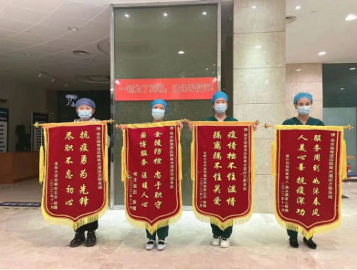 近日,河西集團(tuán)南京國際博覽中心酒店“愛心賓館”再次收到了解除隔離人員贈送的4面錦旗,面面錦旗表心聲,聲聲感謝,深深信任。每一次肯定,都賦予我們更大的力量!