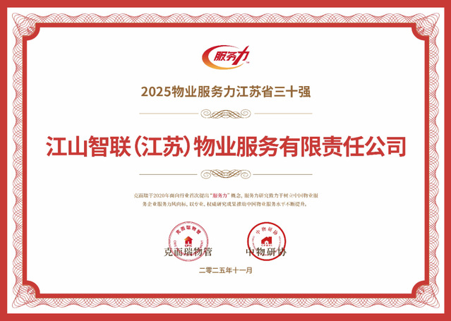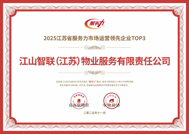 河西集團江山智聯物業(yè)憑借卓越的服務品質與前瞻的戰(zhàn)略布局,一舉斬獲2025南京國有物業(yè)服務力領先企業(yè)TOP1、2025江蘇省服務力市場運營領先企業(yè)TOP3、2025物業(yè)服務力南京十強、2025物業(yè)服務力江蘇省三十強、2025華東區(qū)域物業(yè)服務力百強企業(yè)、五項行業(yè)重磅榮譽。